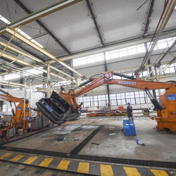 報(bào)廢車輛由解體廠進(jìn)行切割拆解,確保報(bào)廢車輛不會(huì)重新流入市場(chǎng)。
